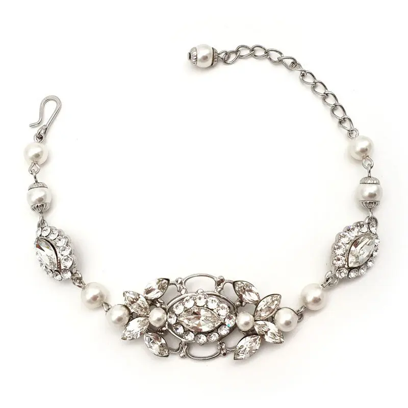 This gorgeous bracelet matches our ‘Cynthia’ earrings, ‘Cynthia Drops’, ‘Cynthia’ necklace, ‘Cynthia’ hair piece and ‘Cynthia’ hair comb. Save time and purchase the ‘Cynthia’ jewellery set or ‘Cynthia Drops’ & Bracelet Set and ensure a perfect match. We also now offer ‘Cynthia’ clip on earrings.