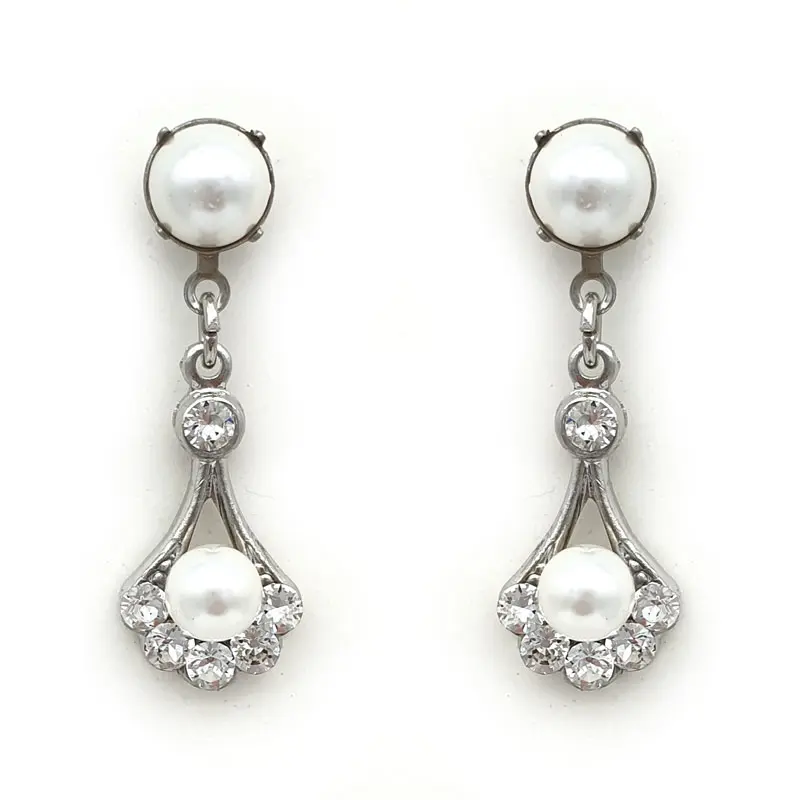 Our Daniela earrings have been so popular we have now designed them with pearls. These stunning delicate drop earrings are made in Australia using clear Swarovski crystals and white Swarovski pearls.