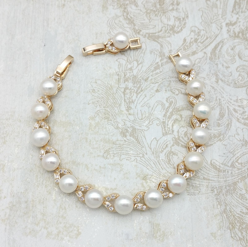 A delightful bracelet that will suit everyone in your bridal party. Made from gorgeous fresh water pearls and sparkling cubic zirconia. Available in silver, gold or rose gold each are equally as beautiful.