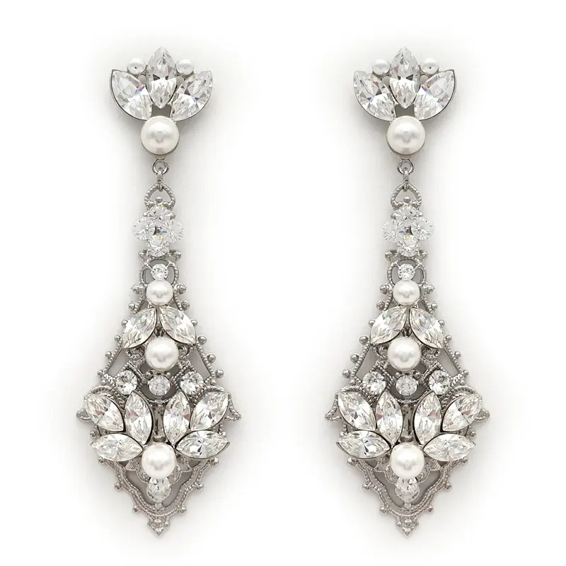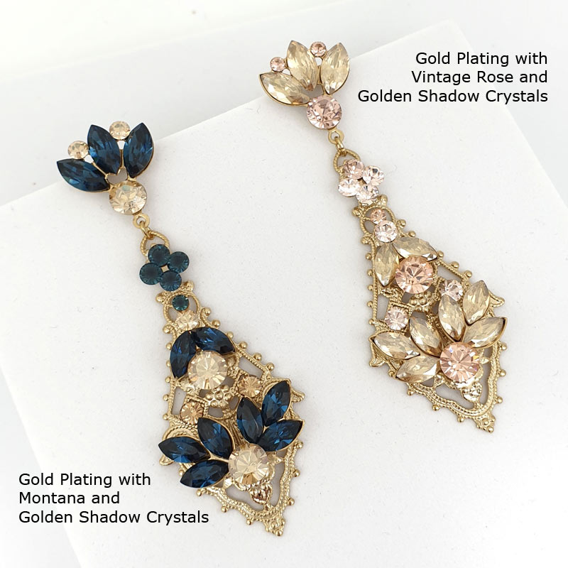 As part of our bespoke range you can choose to purchase these earrings ‘as photographed’ or ‘customise’ to suit your styling. Available in either silver, gold or rose gold plating. Crystal colours can be changed to montana, aquamarine, peridot, golden shadow, amethyst and siam (please view the colour chart). Pearl options are white or ivory. We try to keep these earrings in stock ‘as photographed’ (silver plating with clear crystals and white pearls) but please note that these earrings may take up to 4 weeks to customise.