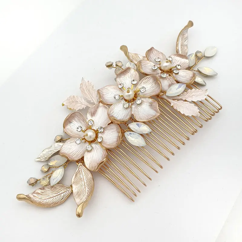 A gorgeous statement piece with stunning detailed flowers and leaves. Adding sprays of soft opal coloured marquise and round crystals and clear crystals and faux pearls detailing the flowers. Works beautifully with a half up style or full up style.