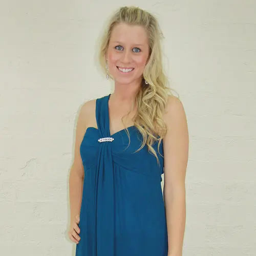 Extremely elegant single strap chiffon evening gown with diamante detail at the front.