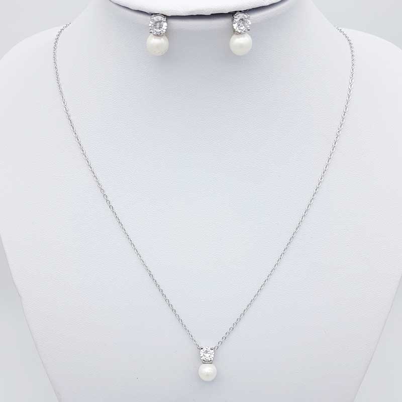 A subtle and delightful pearl necklace set perfect for that touch of detail. Made from quality cubic zirconia and simulated pearls. Available in either silver or rose gold plating. Perfect for the bride or her special bridesmaids.